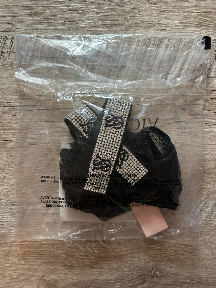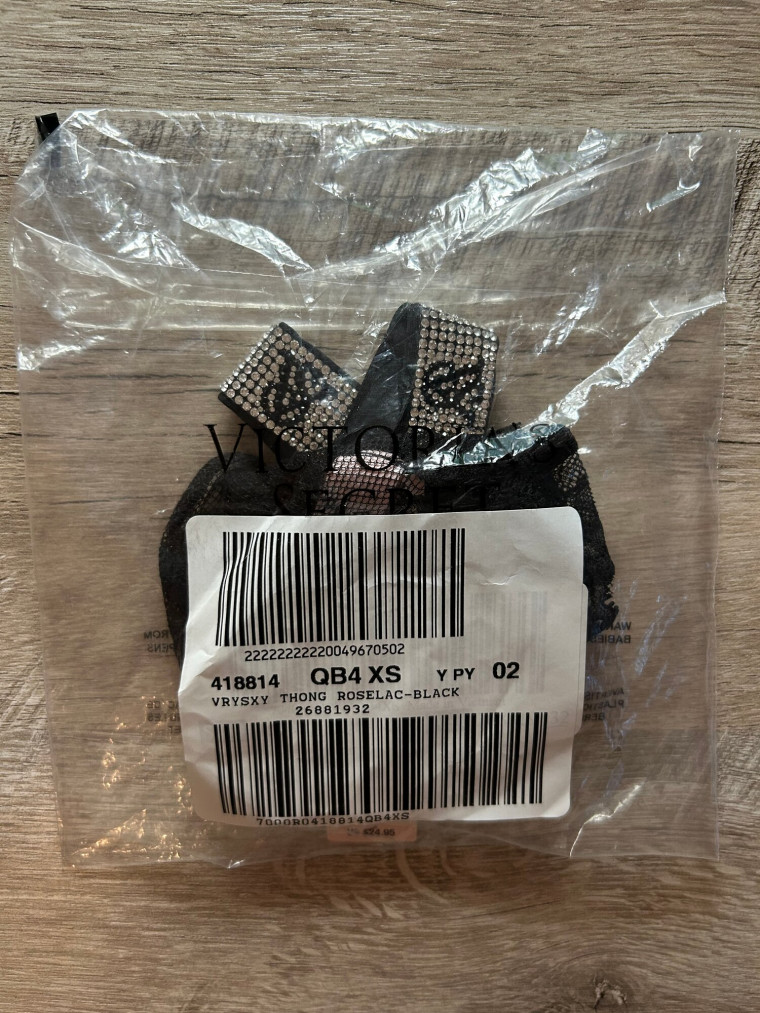Эти едва заметные кружевные стринги Виктория Сикрет завораживают знаменитыми блестящими ремешками с монограммой и логотипом, украшенными сверкающими стразами.