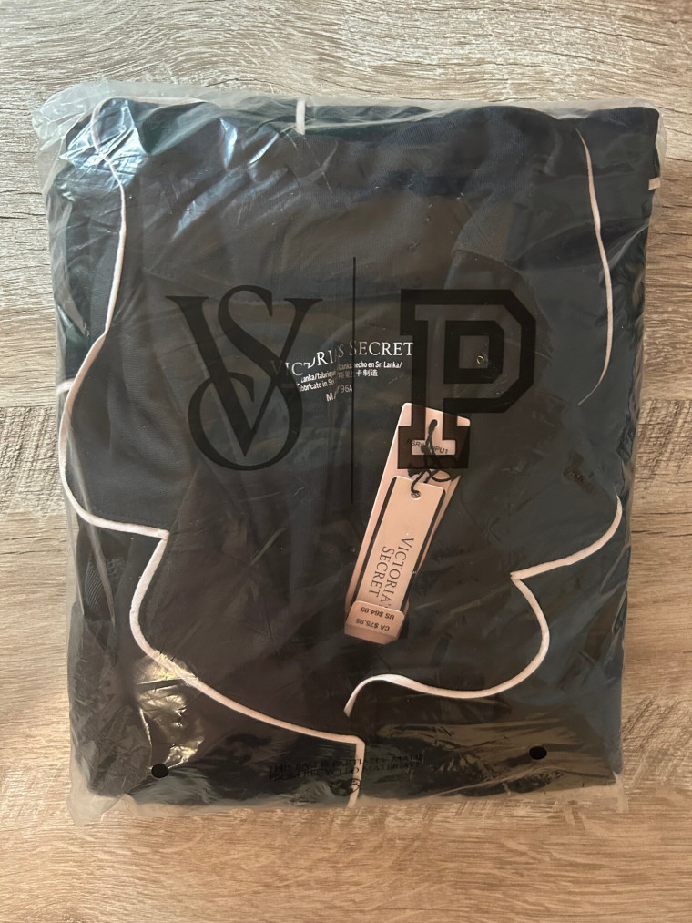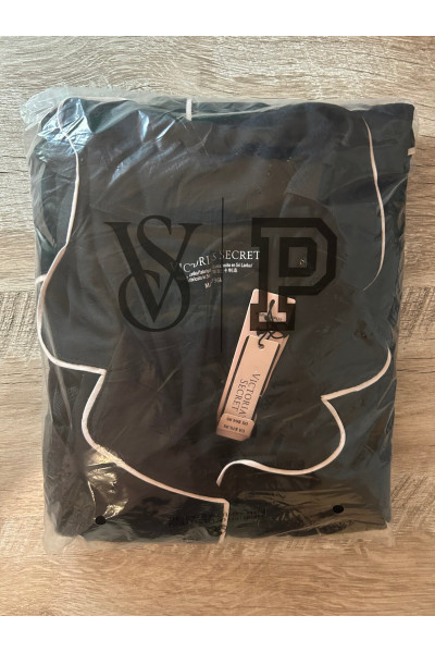 Главный приоритет: вечный комфорт. Этот пижамный комплект Виктория Сикрет состоит из пуговиц с короткими рукавами и шорт в тон из мягкого маслянистого модала с легким тянущимся в четырех направлениях. Цвет пижамы: черная, с окантовкой.