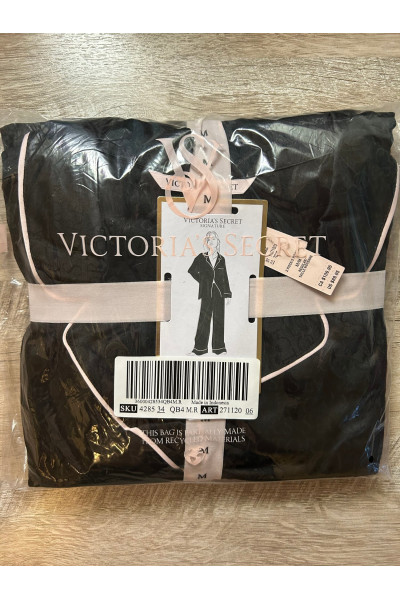 Новинка сезона! Пижама Victoria's Secret Satin Long Pajama Set черный жаккард с лого.