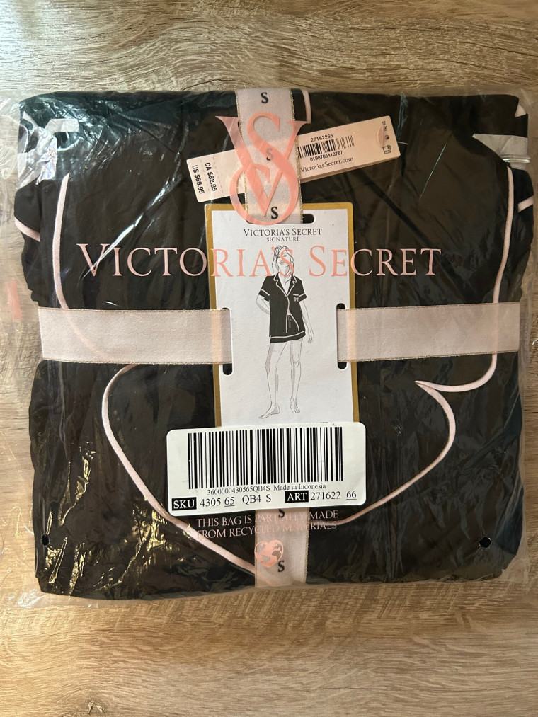 Ваш любимый пижамный комплект из модала? Мы украшаем его бантом. Эти пижамы от Виктория Сикрет не только мягкие, но и облегающие и невероятно лёгкие, обеспечивающие комфорт в любое время года. Украшены кружевным бантом на кармане. Цвет пижамы: черная, с окантовкой и бантиком.