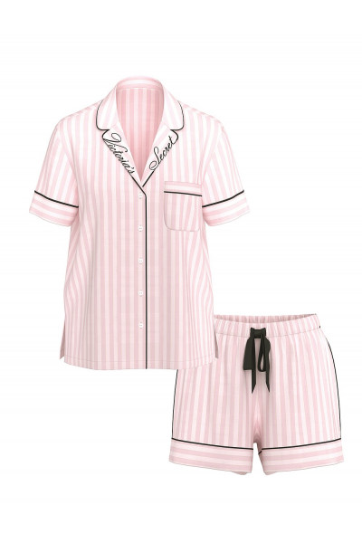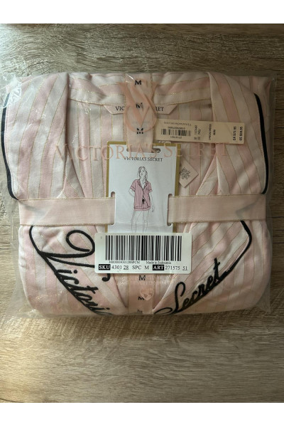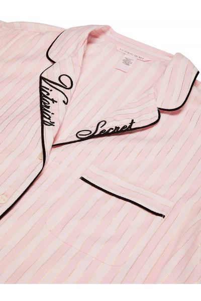 Уютный хлопок и ультрамягкий модал — эта уютная фланель с начесом от Виктория Сикрет будет радовать Вас в любое время года. Топ на пуговицах спереди дополнен элегантным логотипом на воротнике. Цвет пижамы: розовая полоска.