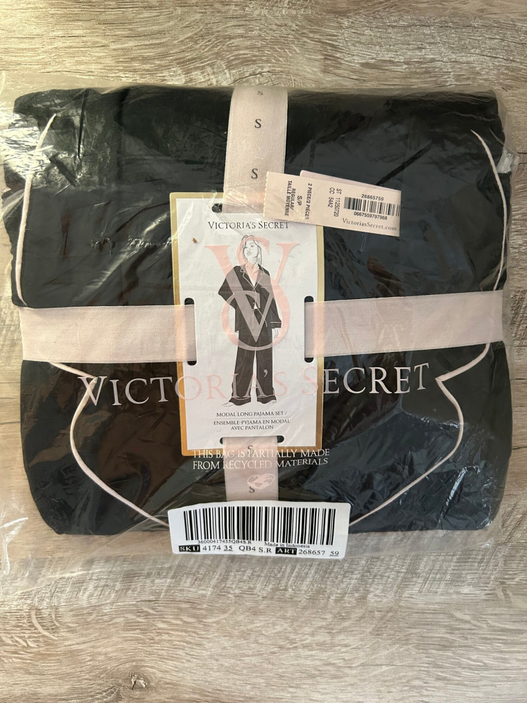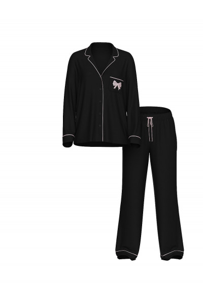 Ваш любимый пижамный комплект из модала? Мы украсили его бантом. Эти топовые пижамы Виктория Сикрет не только мягкие и облегающие, но и невероятно лёгкие, обеспечивающие комфорт в любое время года. Карман украшен кружевным бантом. Цвет пижамы: черная с окантовкой.