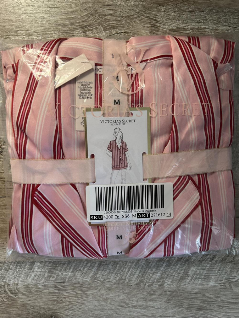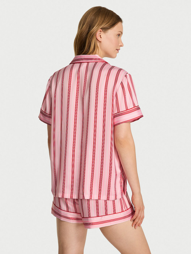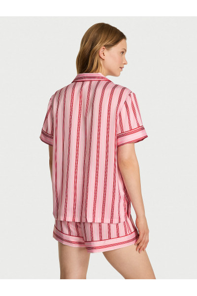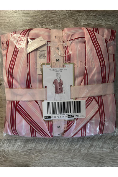 Погрузитесь в роскошь с самыми продаваемыми пижамами Виктория Сикрет, которые отличаются глянцевым блеском и идеальным, свободным кроем. Топ с короткими рукавами на пуговицах и подходящими шортами — в лимитированных цветах и принтах, которые Вы захотите коллекционировать! Цвет пижамы: конфетно-розовая полоска.